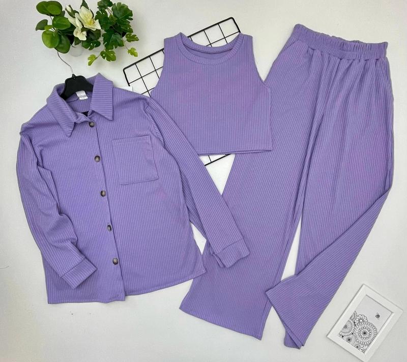 арт 2055 Костюм Супер новиночка! Рубашка, топ та штани-палаццо тканина рубчик-мустанг с карманами рубашка и брюки по бокам с разрезами выглядит невероятно современно! размер/длин.руб./пог/рукав от горловины/длин.топа/пог/длин.штанов/крок/пот/пот похибка+-2см 164/62/50/63/35/35/94/66/31/50-2шт