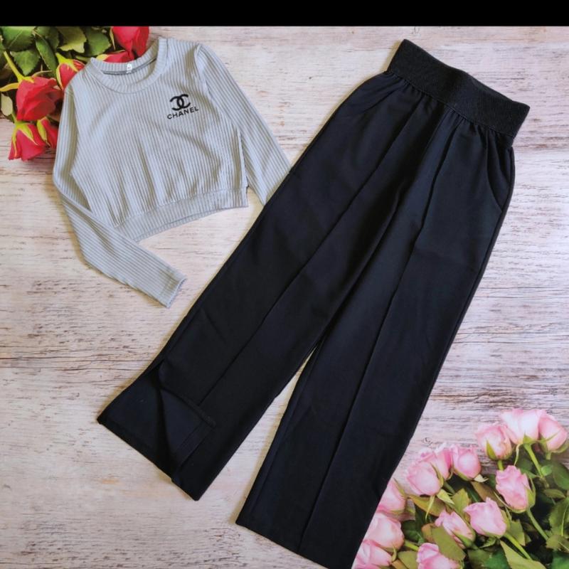 кофтинка тканина мустанг рубчик + Брючки палаццо , гарно спадаюча тканина Тіар Спереді по всій довжині штанішок стрілочки, Пояс штанішок з якісної чорної резінки заміри-довжина/ пог/ рукав від плеча/ довжина штанів/крок /стегна\пояс 140-33/35/48\92/68/42/27 146-35/35/51\95/69/43/27 158-38/37/55\101/74/47/30 🌝