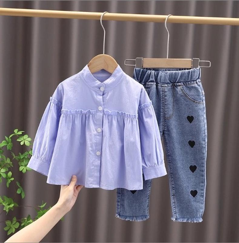 🎯В НАЯВНОСТІ Красивий костюм двійка для дівчинки Блуза\ніжна тканина котон Штани\джинс Виміри 90-Довжина блузи 36 см рукав від горла 35 см Довжина джинсів 52 см крок 31 см 100-Довжина блузи 38 см рукав від горла 37 см Довжина джинсів 55 см крок 33 см 110-Довжина блузи 40 см рукав від горла 40 см Довжина джинсів 62 см крок 39 см 120-Довжина блузи 42 см рукав від горла 41 см Довжина джинсів 64 см крок 41 см
