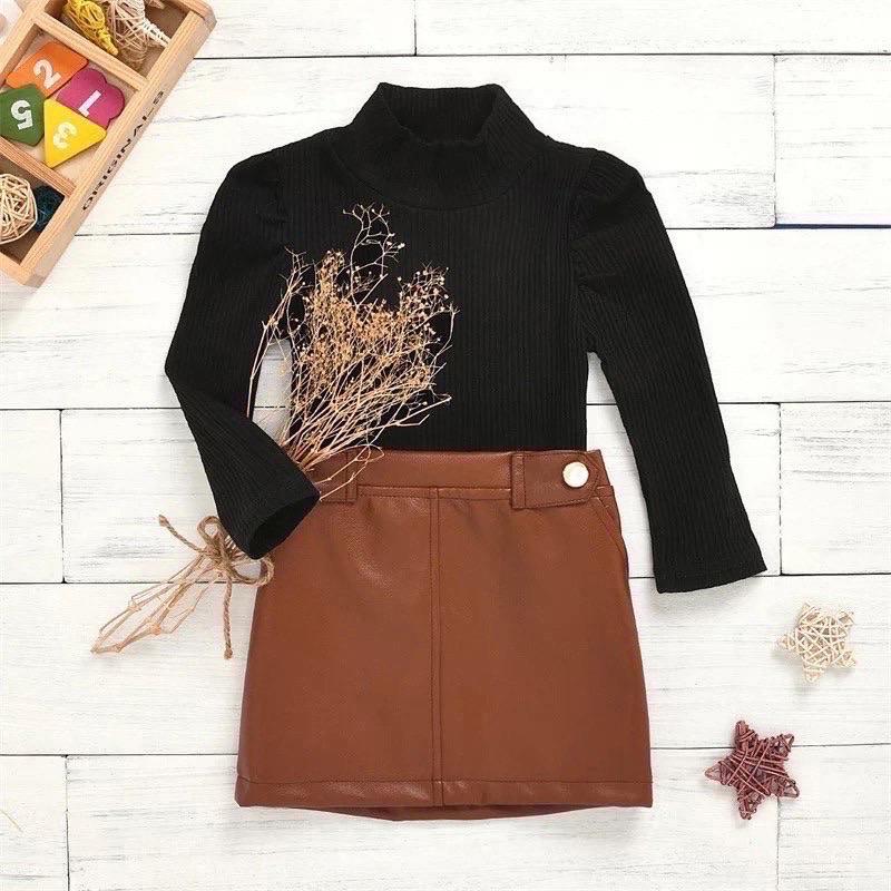 ✏Стильный комплект гольф и юбка. ✏Гольф - трикотаж "рубчик", юбка - эко-кожа. Юбка сзади с резинкой в поясе. ✅90 - 1 шт ✅100 - 1 шт ✅110 - 1 шт ✅120 - 1 шт 📏📐📝ЗАМІРИ📝📐📏 90: гольф длина 30 ширина 23 рукав 29 юбка длина 25 бедра 28 пояс 20 100: гольф длина 35 ширина 24 рукав 32 юбка длина 26 бедра 30 пояс 21 110: гольф длина 37 ширина 24 рукав 35 юбка длина 27 бедра 30 пояс 22 120: гольф длина 40 ширина 25 рукав 36 юбка длина 28 бедра 33 пояс 23