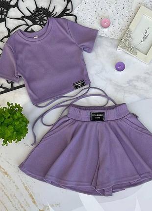 Летний костюмчик двойка топ+юбка-шорти тканина трикотаж мустанг рубчик отличное качество Рекомендую!!! 128(2 шт) длина топа 24;пог 30,длина шорт 34;пояс 24 134(2 шт)-длина топа-25;пог-31;длина шорт-34;пояс-25 140(2 шт)-длина топа-26, пог-32;длина шорт-34,пояс-26 146(2 шт)-длина топа-27, пог -33;длина шорт- 35,пояс-26 152(2 шт)-длина топа-28, пог- 36, длина шорт- 37,пояс-28 +- 1 см