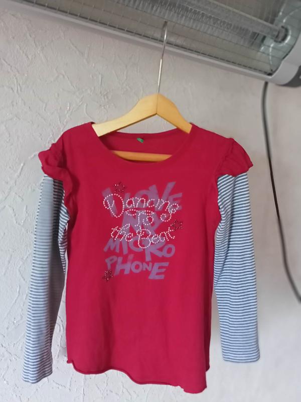 Продам пакет вещей на девочку на возраст 4- 6 лет ( 5 единиц). Состояние вещей хорошее. Фото 1. Реглан фирмы benetton на возраст 4-5 лет размер 104-110. Замеры: длина 48см, длина рукава 40см, полу обхват подмышками 32см, по плечам 29 см. Состав: 100% Cotton Фото 2. Штаны на девочку фирма TU на возраст 4-5 лет размер 104. Синего цвета. Состояние хорошее. Замеры: длина 56,5 см, полу обхват по талии 24 см, шаговый 39 см, ширина штанины по низу 9 см. Состав: 95% Cotton/ 5% Elastane. Фото 3. Платье на возраст 6 лет размер 110-116. Замеры: длина 50см, длина рукава 39см, полу обхват подмышками 32см (ткань немного тянется)., по плечам 25 см ( в спокойном состоянии), полу обхват по талии ( хорошо тянется) 31 см. Состав: 85% Cotton/ 10% Polyester/ 5% Spandex Фото 4. Майка фирмы topolino размер 110-116. Состояние хорошее. Цвета в реальности намного красивее и насыщеннее. Замеры: длина 39,5см, полу обхват подмышками 29 см. Состав: 100% Baumwoll Фото 5. Кофта тёплая фирмы esprit возраст 4-5 лет размер 104-110. Состояние хорошее. Состав: 60% Cotton/ 40% Acrylic. Замеры: длина 41 см, полу обхват подмышками 30 см, длина рукава 39 см, отверстие для руки 9 см, по плечам 25 см ( немного тянется).