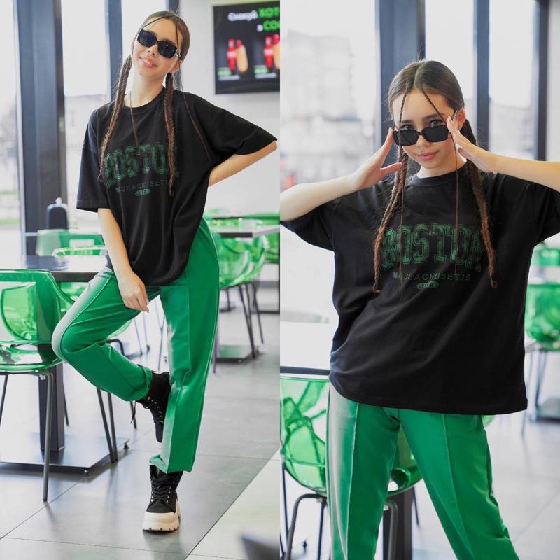 Удобный спортивный костюм футболка с трендовым накатом штаны с карманами Ткань футболки турецкий кулир штаны турецкая двунитка ПОЛНОМЕРНЫЕ Размер/длин.футб/пог/длин.штанов/крок/пот/поб похибка+-2см 140/53/54/84/61/27/42-1шт 152/60/55/89/65/29/44-1шт 158/62/58/94/68/30/46-1шт