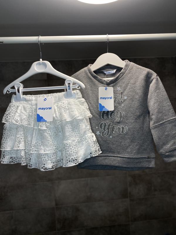 Просто отличный набор от Mayoral с белоснежной юбкой и стильной кофтинки для красавицы💕