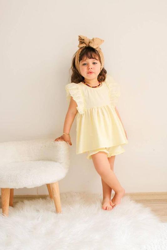 Любовь с первого взгляда Очень милые костюмчики в стиле ***@ Для стильных девочек🤍Тканина 100% котон ,на блузочці рюши -тканина прошва Ну, очень классный 🥰🥰 Замеры: 🤍98 см - Блуза: длина 36; ПОГ 28; Шорты: длина 16; талия(резинка) 18. 🤍104 см - Блуза: длина 39; ПОГ 29; Шорты: длина 27; талия(резинка) 19. 🤍110 см - Блуза: длина 43; ПОГ 29; Шорты: длина 28; талия (резинка) 20. 🤍116 см - Блуза: длина 44; ПОГ 30; Шорты: длина 28; талия (резинка) 20. 🤍122-128 см - Блуза: длина 46.5; ПОГ 33; Шорты: длина 32; талия (резинка) 21. 💸Цена 715 грн