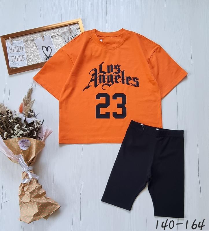 В НАЯВНОСТІ!!! Стильный костюм футболка оверсайз и велосипедки ткань турецкий стрейч-кулир отличного качества Размеры полномерные 140(1 шт)-длина футболки 54,пог 49,длина велосипедок 40,пояс 24 146( 1 шт)-длина футболки 56,пог 50,длина велосипедок 43,пояс 26 152(1 шт)-длина футболки 58, пог 52,длина велосипедок 45,пояс 28 158(1 шт)-длина футболки 60,пог 54,длина велосипедок 48,пояс 30 164(1 шт)-длина футболки 63,пог 57,длина велосипедок 52,пояс 31 +-2 см