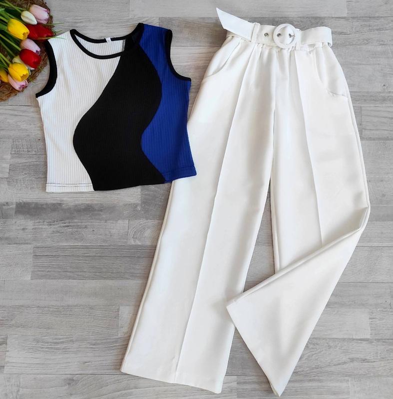 Стильная новиночка Модный лук топ рубчик, палаццо ткань костюмная, в поясе резинка, карманы пояс входить в комплект замеры: длина топа/пог/брюки длина/шаг/пояс 140-40/38/85/64/26 146-42/40/88/66/28 152-44/41/90/68/29 158-45/44/95/71/30 +-2см