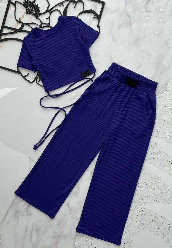 М🌸 летний костюм в рубчик, топ и палаццо,