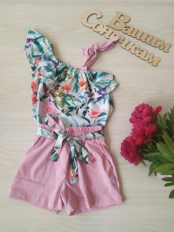 Умествия 💐 Яркий летний комплект Топ+шорти Тканина софт в шортах есть карманы Пояс в комплекті Качество👍👍👍 замеры: длина топа/пог/шорты длина/пояс/п**********/23/39 134-42/34/28/24/41 140-44/37/29/25/44 146-45/39/31/27/45 152-46/40/32/27/46 158-47/41/33/28/47 +-2см