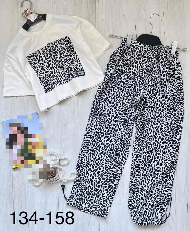 Арт 2798 Стильний костюм для дівчаток Тканина софт найвищої якості! Футболка з котону Штани на високій посадці та понизу є утяжка Зріст/Довж футболки/Пог/довж. штанів/крок/пот/поб Похибка +-2см 134/39/47/79/57/26/45-1шт 158/44/50/95/71/39/50-1шт Тан