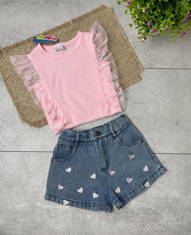Невероятно стильный летний комплект Укороченная майка +джинсовые шорты Шорты- летний джинс Майка - рубчик ☁ Очень стильно смотрится🥰🥰🥰 Хорошее качество ✅Рекомендую ! 90 - майка длиннее 27 см,шир -25 см, шорты -длин 22 см,пояс -20 см (4 шт) 100 - майка длиннее 29 см,шир -27 см, шорты -длин 22 см,пояс -21 см (3 шт) 110 - майка длиннее 31 см,шир -28 см, шорты -длин 24 см,пояс -22 см (2 шт) 130 - майка длиннее 34 см,шир -31 см, шорты -длин 26 см,пояс -25 см (1 шт)