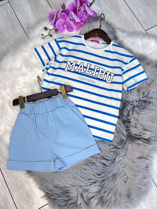 Костюмчик футболка + шорты ткань турецкий кулир+стреч коттон шорты под резинку есть карманы отличное качество! рост/длин.футболки/пог/длин.шорт/пот/поб похибка+-2см 134/47/39/29/26/38-2шт 140/49/40/31/26/40-1шт