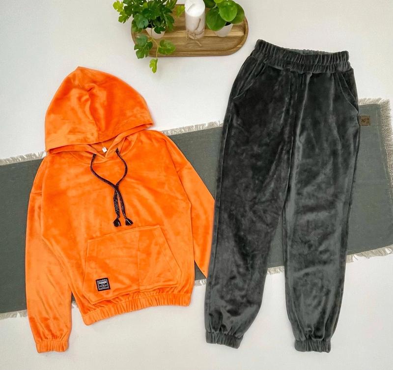 Таня Яскравий костюм тканина велюр з капюшоном низ та манжети під резинку штани з кишенями СУПЕР ЯКІСТЬ! зріст/довж.худі/пог/рукав від горловини/довж.штанів/крок/пот/поб похибка +-2см 134/46/38/56/78/55/25/40-8шт 140/48/41/58/79/58/26/42-6шт 146/50/42/60/84/62/27/44-6шт 152/53/43/61/88/65/29/46-6шт 158/55/46/64/92/68/29/47-5шт