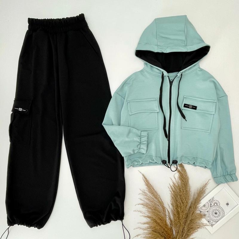 Таня Стильний спортивний костюм Кофта з утяжкою+ штани карго свободного крою Тканина двухнитка Гарна якість Зріст/довж.кофти/пог/рукав/довж.штанів/крок/пот/поб похибка+-2см 134/40/43/50/85/63/23/41-1шт 146/46/46/53/90/67/26/43-1шт