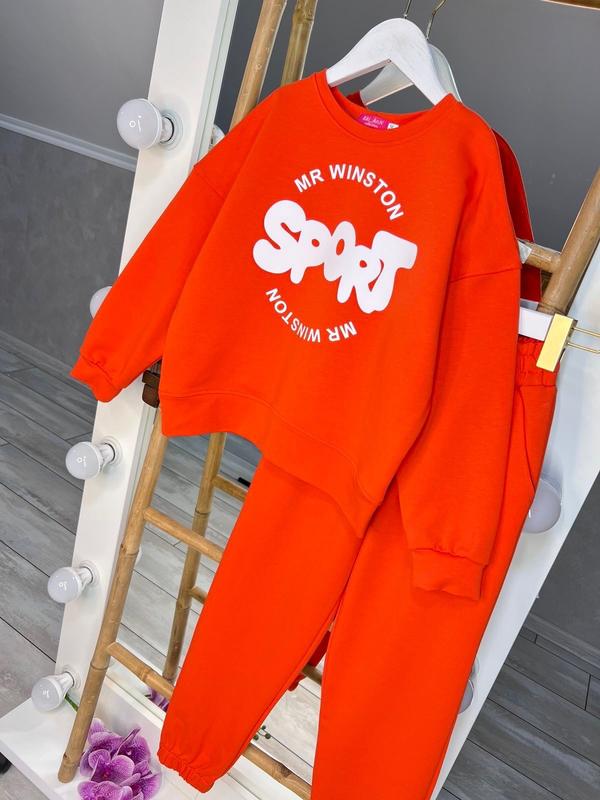 Очень стильный спортивный костюмчик Ткань 2нитка, легкий, подойдет для прогулок и занятий спортом Свитшот украшен двойным прорезиненным накатом, рукавчик на манжете; штанишки на резиночке, есть кармашки РЕКОМЕНДУЮ! рост/длина/пог/рукав от горловины/длина брюк/шак/пот похибка+-2см 140/49/49/57/81/58/27-1шт 146/50/51/60/85/61/27-2шт 152/51/53/63/89/64/28-1шт 158/54/55/65/92/67/28-2шт 164/56/57/67/95/69/29-1шт