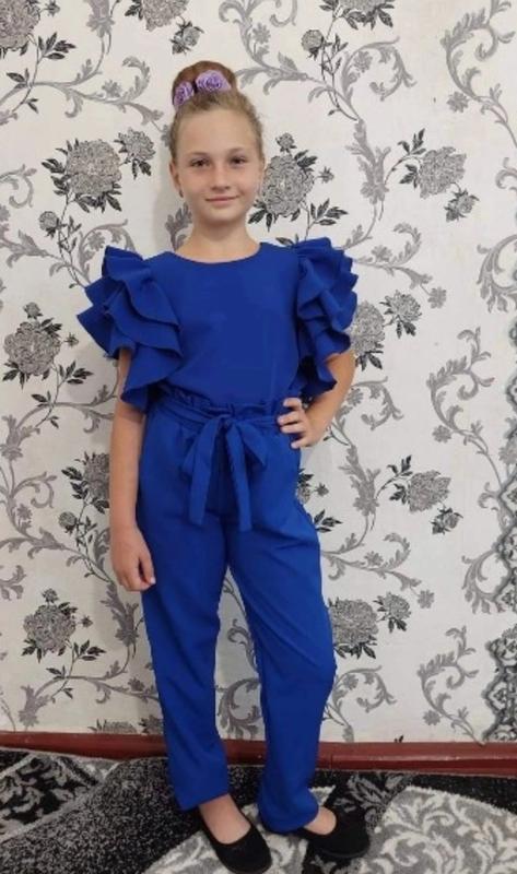 Под заказ, отшил 1-5 роб. дня Невероятно красивый костюм❗️ РЕКОМЕНДУЄМО ‼️ КЛИЕНТЫ ПРЕДСТАВЛЕНИЯ ПОВЛЕНИИ🤗 В штанах есть кармашки, талия немного завышенная, на резинке, есть пояс. Блуза сзади на молнии. 💙Ткань: костюмка хорошего качества. Замеры: +-1-2см 🔹р.116 - длина блузы 39,5см / ОГ 62см / длина брюк по боковому шву 70см / шаг 49см / обхват талии 49см 🔹р.122 - длина блузы 41см / ОГ 66см / длина брюк по боковому шву 75см / шаг 53/ обхват талии 49см 🔹р.128 - длина блузы 42см / ОГ 70см / длина брюк по боковому шву 79см / шаг 57 см / обхват талии 49см 🔹р.134 - длина блузы 42см / ОГ 72см / длина брюк по боковому шву 84см / шаг 61см / обхват талии 50см 🔹р.140 - длина блузы 44см / ОГ 73см / длина брюк по боковому шву 87см / шаг 63см / обхват талии 50см 🔹р.146 - длина блузы 46см / ОГ 74см / длина брюк по боковому шву 91см / шаг 67см / обхват талии 52см 🔹р.152 - длина блузы 49см / ОГ 80см / длина брюк по боковому шву 95см / шаг 70см / обхват талии 54см 🔹р.158 - длина блузы 50см / ОГ 82см / длина брюк по боковому шву 98см / шаг 73см / обхват талии 60см 🔹р.164 - длина блузы 55см / ОГ 88см / длина брюк по боковому шву 101см / шаг 76см / обхват талии 60см 👉Безопасной оплаты нет Кнопку КУПИТЬ не жмите, до уточнения деталей 🚚Новая почта, есть наложка с предоплатой 🚛 Укрпочта- +5грн упаковка По оплате и доставке уточняйте дополнительно, к покупке! Возвращение отсутствует, делайте свой выбор обдуманно. Осмотрите товар в отделении,ссечение из дома не рассматриваются! Благодарю что дочитывали😊💙💛 ом