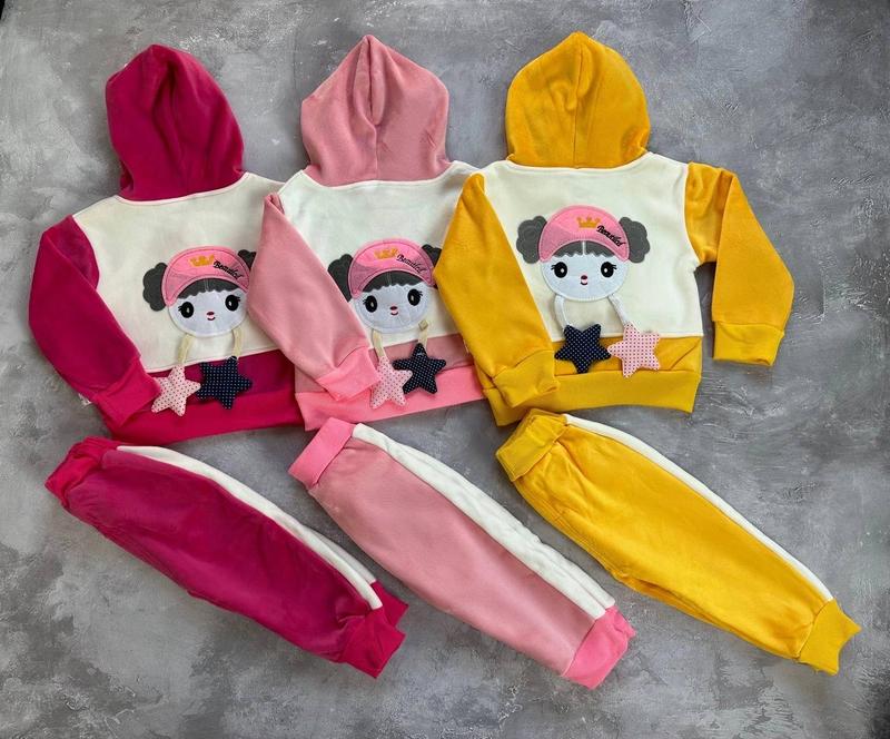 Велюровый тёпленький костюмчик! Качество топ💫 Размер по этикетке, смотреть замеры!! Замер рукава от плеча!! Замеры: S 80 - 6 шт 🧥кофта - длина 35 см, ширина-31 см, длина рукава - 31 см 👖брюки - длина 48 см, шаг -27 см, пояс -19 см( резинка тянется) M 90 - 6 шт 🧥кофта - длина 36 см, ширина-32 см, длина рукава-32 см 👖брюки - длина 50 см, шаг -28 см, пояс -20 см( резинка тянется) L 100 - 6 шт 🧥кофта - длина 38 см, ширина- 33 см, длина рукава - 35 см 👖брюки - длина 52 см, шаг -32 см, пояс -21 см( резинка тянется) ХL 110 - 4 шт 🧥кофта - длина 41 см, ширина- 34 см, длина рукава-36 см 👖брюки - длина 56 см, шаг -34 см, пояс -22 см( резинка тянется) XXL 120 - 1 шт 🧥кофта - длина 44 см, ширина- 36 см, длина рукава- 37 см 👖брюки - длина 57 см, шаг -37 см, пояс -23 см( резинка тянется) XXXL 130 - 1 шт 🧥кофта - длина 46 см, ширина- 38 см, длина рукава- 40 см 👖брюки - длина 62 см, шаг -38 см, пояс -23 см( резинка тянется)