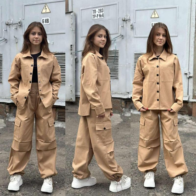 Подростковый стильный котоновый костюм для девочек mеri, рубашка и штаны карго р-ры на рос...