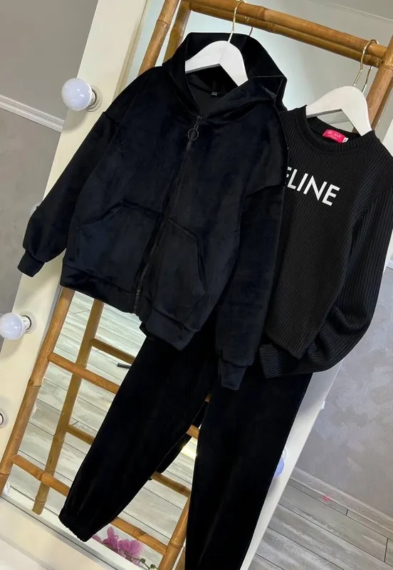 Велюровый костюм тройка для девочик - худи, штаны и реглан