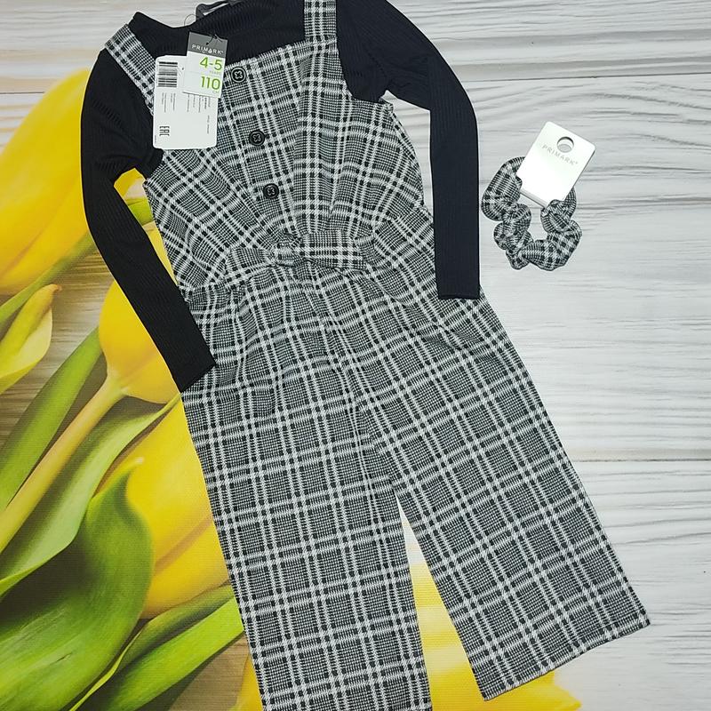 ‼️В наличии!!️ 👧Стильный комплект: комбинезон кюлотами, реглан в рубчик и резиночка для волос 👧 ❤️От бренда Primark❤️ 🥰На бирке 4-5 лет, рост 110 см🥰 🤩Замеры: реглан - длина 38 см, ширина 29 см, рукав 36 см комбинезон - длина 69 см, ширина 36 см, шаг 27 см🤩