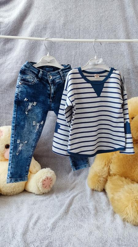 Костюм в идеальном состоянии 🌼 Стильный и удобный. Именно в таком образе ваша малышка будет чувствовать себя комфортно и стильно⭐ Замеры: 💙 джинси длина - 50см ширина - 29см 💙кофта длина - 39см ширина - 30см