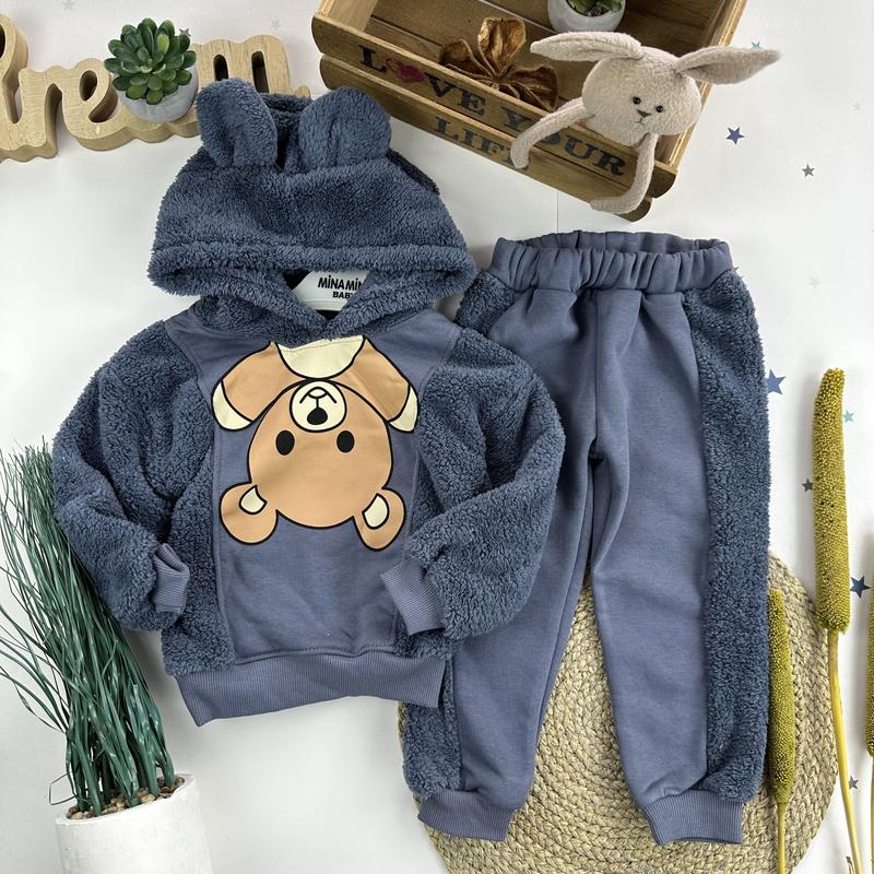 Теплый и качественный костюм производства Турция с ушками. Качество- люкс! Ткань-комбинированная махра вельсофт и трехнить на флисе,. Приятный на ощупь и очень теплый. Малюнок- накат! Размеры: 2-реглан рукав от капюшона 34/ длина 33, брюки длина 50/шар 33 3-реглан рукав 37/ длина 35, брюки длина 51/крок 35 4- реглан рукав 40/ длина 36, брюки длина 55/крок 38 5- реглан рукав 42/ длина 38, брюки длина 59/шар 40 Цена: 545грн