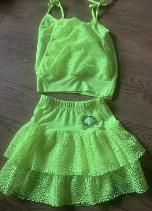 Очень яркий костюм на девочку в таком костюме ребёнка не потеряете в толпе пол обхват талии 22 см тянется до 38 длина 30 см Майка ширина 29 см длина 32 без бретелек