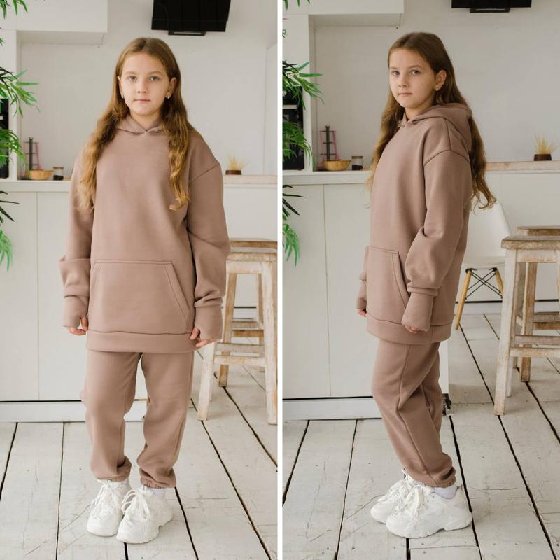 Стильный, теплый и практичный костюм из трехнитки с начесом. Можно с надписью, можно без. На выбор. Доступен к заказу для девушек и мальчиков в возрасте от 7 до 13 лет. Удлиненное худи свободного кроя со спущенной линией плеча, манжет с отверстием для пальчика, карман "кенгуру". Низ рукава на резинке. Брюки джоггеры удобной высокой посадки, пояс и низ на резинке, есть два боковых кармана. 10 цветов: малина, желтый, яблоко, электрик-синий, джинс, мокко, графит, зеленый, голубой, лиловый. Размеры/рост: 128, 134, 140, 146, 152. Есть наложка с подпиской 200 грн Удлиненная худи длина/длина рукава от горловины/ширина худи/длина брюк/шак/пояс 128-54/64/43/81/57/26 134-55/65/44/82/61/26 140-59/68/47/87/63/27 146-62/70/50/89/65/28 152-65/75/51/91/67/29