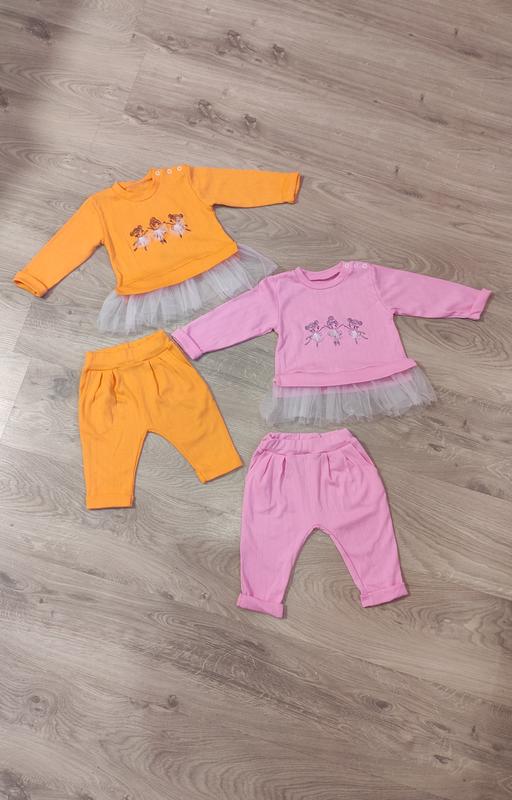 Набір 2- предм.: Кофта з фатином+штани Тканина:Інтерлок, 100% хлопок, (фатин - 100% полиэстер). Розміри в наявності: помаранчевий (74,80,92) рожевий (74,80,86)