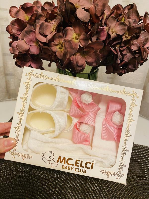 Набор ( колготки, повязка и тапочки) для новорожденно девочки