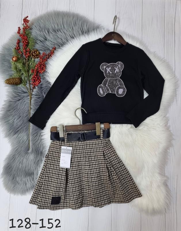 ландиш 💞Крутой, стильный костюм юбочка-ткань плотный турецкий трикотаж Поясок в комплекте кофтинка рубчик В поясе широкая резиночка РЕКОМЕНДУЮ! 128(2 шт)-длина кофты 39,рукав от плеча 44, пог 30,длина юбочки 35,пояс 25 134(2 шт)-длина кофты 43,рукав от плеча 46, пог 32, длина юбочки 38,пояс 28 140(2 шт)-длина кофты 44,рукав от плеча 47, пог 33, длина юбочки 41,пояс 29 146(2 шт)-длина кофты 46,рукав от плеча 50, пог 35,длина юбочки 43,пояс 30 152(2 шт)-длина кофты 48,рукав от плеча 52, пог 37, длина юбочки 45,пояс 31 +-2 см