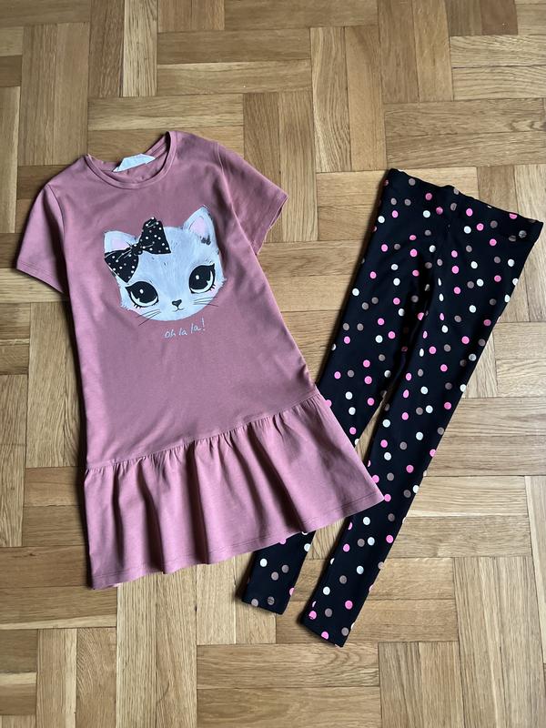 Набір сукня-туніка і лосіни від H&M, стан ідеальний. Розмір 6-7 років, сукня, пог 37 см, довжина 66 см; лосіни, пот 26 см (резинка тягнеться до 31 см), довжина 68,5 см, крок 53 см.
