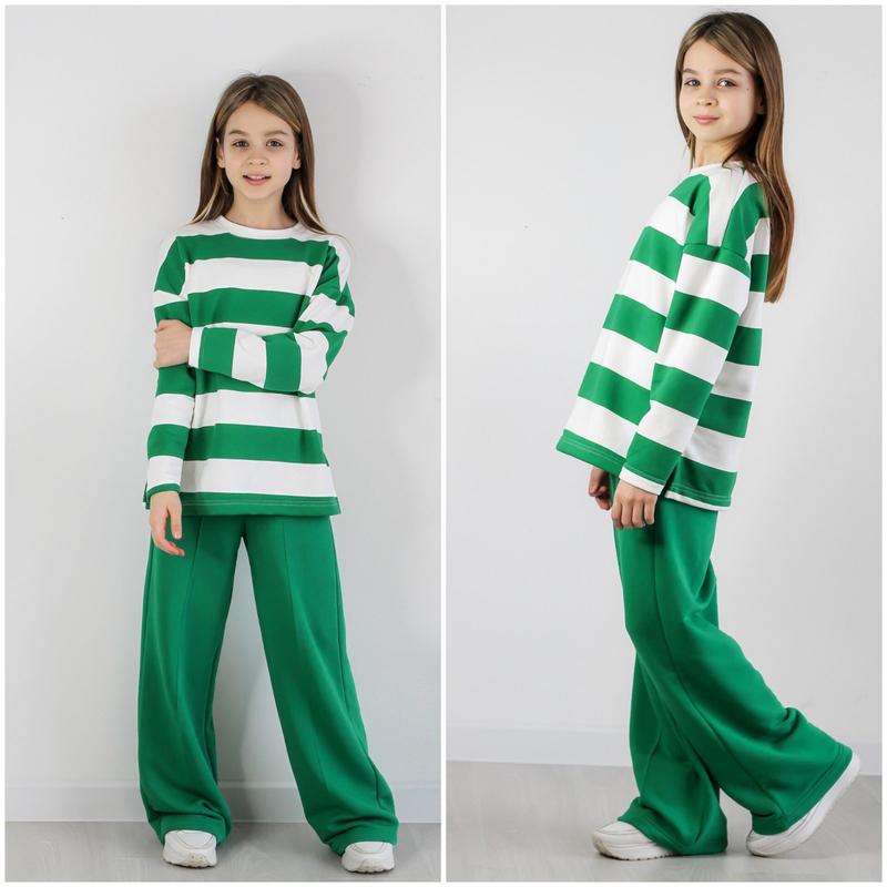 модняшка НОВИНКА! В наличии! Стильный комплект для девочек Удлиненный реглан и брючки палаццо. В брюках есть карманы, пояс на широкой резинке, в поясе есть шнурок. По низу реглана по бокам разрезы. Ткань - турецкая трехнить петля, очень хорошего качества. Замеры: 134 кофта длина - 51см, Полуобхват груди - 42см, рукав от горловины - 55см. брюки длина - 83см, шаг - 60см, пояс - 26см, полуобхват бедер - 41см. 140 кофта длина - 53см, Полуобхват груди - 44см, рукав от горловины - 57см. брюки длина - 88см, шаг - 62см, пояс - 27см, полуобхват бедер - 42см. 146 кофта длина - 55см, Полуобхват груди - 46см, рукав от горловины - 60см. брюки длина - 91см, шаг - 67см, пояс - 28см, полуобхват бедер - 43см. 152 кофта длина - 57см, Полуобхват груди - 47см, рукав от горловины - 62см. брюки длина - 94см, шаг - 69см, пояс - 29см, полуобхват бедер - 44см. 158 кофта длина - 60см, полуобхват груди - 50см, рукав от горловины - 66см. брюки длина - 97см, шаг - 72см, пояс - 30см, полуобхват бедер - 46см.