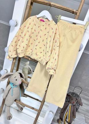 Арт 4433 Невероятно красивый весенний костюмчик двойка Брюки под резинку Из ткани вельвет Приятный к телу Рекомендую Рост / Длина / рукав от горловины / пог / длина / шаг / пояс 128/40/53/50/80/57/25-2шт 134/42/55/51/84/59/25-2шт 140/45/59/53/87/62/27-2шт 146/46/61/53/89/63/27-2шт 152/49/63/54/93/65/28-2шт Тан