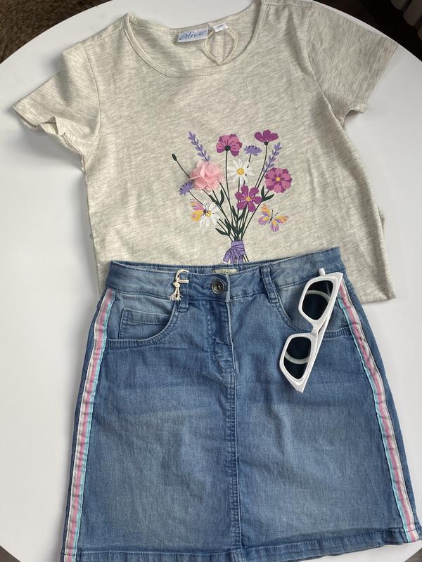Юбка джинсовая + футболка Размер 134 см Юбка длина 37,пояс 30 Футболка длина 57, пог35 Цена 300грн