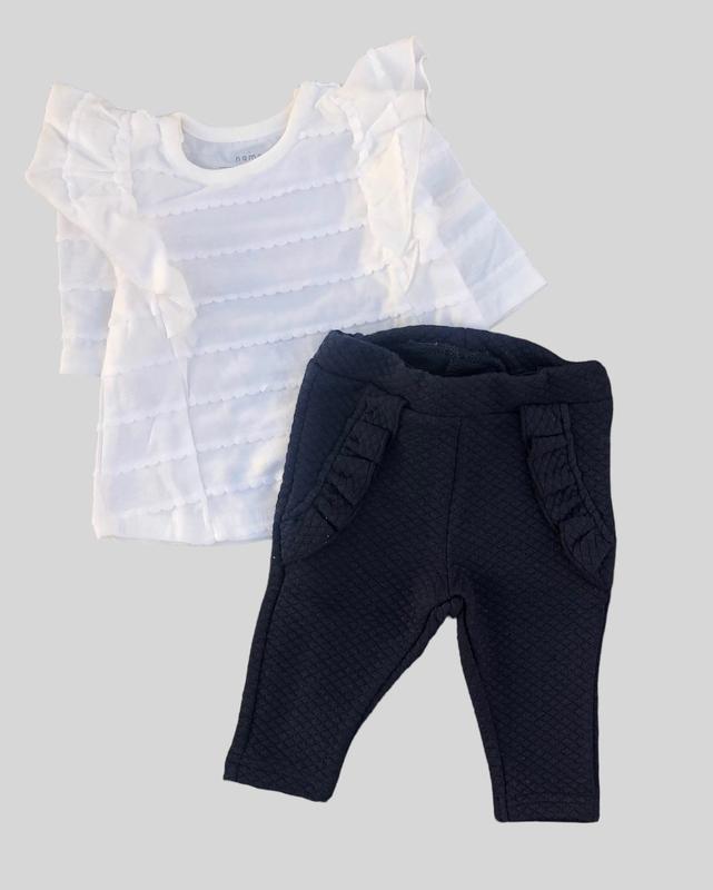 Стильний костюм для дівчинки. Туніка виконана з натуральної бавовни, оздоблена ніжним бавовняним мереживом. Штани виготовлені з капітону (тришарове натуральне трикотажне полотно з проміжним утеплювачем, з ефектом стібки у вигляді ромба або квадрата. Щільний і об'ємний, м'який на дотик матеріал). Костюм дуже комфортний в носінні, добре пропускає повітря, дозволяючи тілу дихати. У такому одязі Ваша крихітка почуватиметься комфортно, затишно та завжди в центрі уваги. Заміри:50 см: туніка: довжина 26 см/рукав 17 см/в грудях 42 см штани: довжина 28 см/в поясі 38 см/в стегнах 44 см/крок 16 см