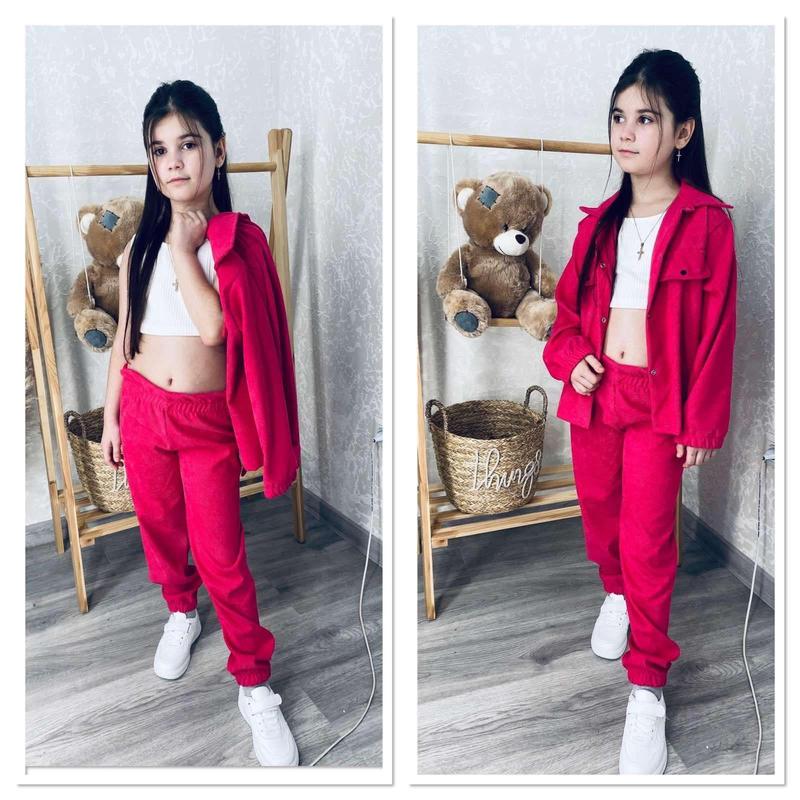 Ціна 580 грн 3-ка Топ+ сорочка + штани Вельвет + рубрик Колір малина 98-104см 110-116см 116-122см 122-128см 128-134см