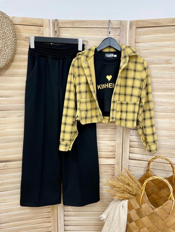 Таня Арт 4556 Дуже крутий костюмчик 3в1 Сорочка+футболка+палацо Тканина сорочки вельвет Футболка та палацо з двунитки преміум якості Сорочка на кнопках знизу по боках утяжка футболка з накатом В штанах є кишені Не кашлатиться! Рекомендую Зріст/довж.сорочки/пог/рукав від горловини/довж.футболки/пог/довж.штанів/крок/пот/поб похибка+-2см 140-146/39/42/58/33/42/92/62/28/44-2шт 146-152/40/43/61/36/43/94/65/29/45-2шт 152-158/42/44/64/39/44/96/69/30/46-2шт 158-164/44/45/67/41/45/99/72/31/48-2шт 164-170/46/47/70/44/46/103/76/32/50-2шт