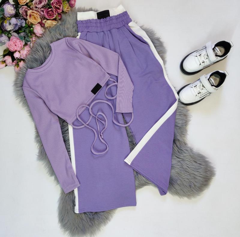 ток в наявності ❤️❤️❤️ Гарний костюм для дівчинки Штани палаццо двонитка з високою талією Дуже стильно виглядає Топ мустанг рубчик, на зав’язках Якість чудова! Довжина кофтинки/Пог/рукав/довжина штанів з білою резинкою/крок/резинка 128-29/31/47/84/58/24 134-31/32/49/88/60/26 140-32/33/51/91/63/27 146-34/34/53/93/66/27 152-35/36/55/98/68/28