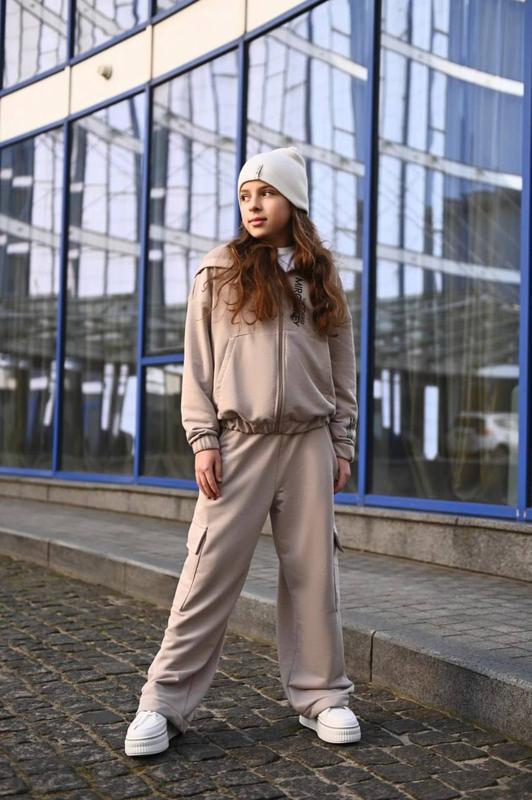 ПІДЛІТКОВИЙ КОСТЮМ ЗІ ШТАНАМИ КАРГО №2436 ✅Цена - 1100 грн ✅ Натуральна тканина пеньє - тринитка без начосу КЛАСУ ЛЮКС (95% бавовна, 5 еластан) турецького виробника не линяє, не кошлатиться, зносостійка. Високої якості пошив. Розміри: 140-146,146-152,152-158,158-164, 164-170 Колір - чорний, сірий, бежевий Принт - шовкографія