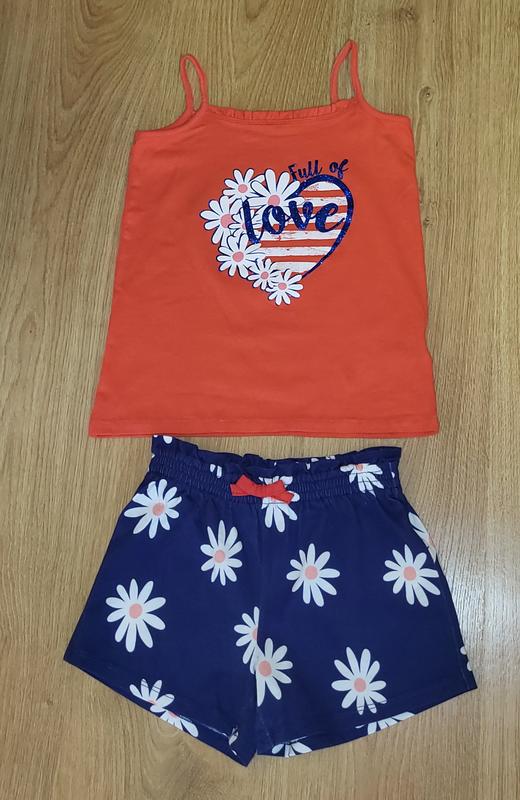 Летний комплект Chicco - маечка и шортики, б/в, оригинал из фирменного магазина. Размер 7 лет/122 см. Состав: футболка - 95% бавовна, 5% еластан; шортики - 94% бавовна, 6% еластан. Тонкий легкий трикотажик. Качество отличное. Майка выполнена в Бангладеш, шорты - в Турции. Состояние отлично. Цена - 300 грн. Замеры: маечка: длина - 44 см, ширина под подмышками - 31,5 см; шортики: длина - 24 см, ширина по поясу - 25,5 см, шаговый шов - 7 см.
