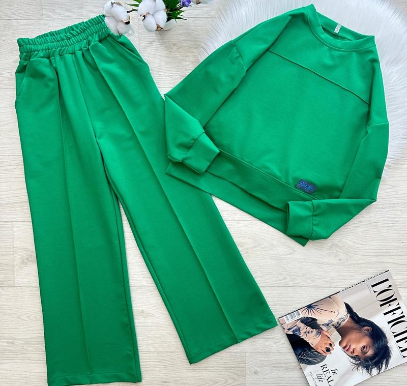 Стильный весенний костюм 🤩🤩🤩 Удлиненная спинка 👌🏻 Штанишки палаццо 😍😍😍 Кофтинка свободного кроя, по бокам разрезы 🥰 Палаццо с кармашками и широкой удобной резинкой в поясе 😉 Тканина: двонитка петля 💛 Производитель: Украина 🇺🇦 ЗАМІРИ ⤵ +/- 1-2см!!! ◾ ◾р.140 Кофта: длина впереди 49см/ длина по спинке 55см/ рукав от горловины 62см/ ПОГ 51см. Брюки: длина 90см/ шаг 65см/ ширина бедер 45см. ◾р.146 Кофта: длина впереди 52см/ длина по спинке 57см/ рукав от горловины 64см/ ПОГ 51см. Брюки: длина 94см/ шаг 66см/ ширина бедер 47см. ◾р.158 Кофта: длина впереди 56см/ длина по спинке 61см/ рукав от горловины 67см/ ПОГ 53см. Брюки: длина 100см/ шаг 72см/ ширина бедер 51см.