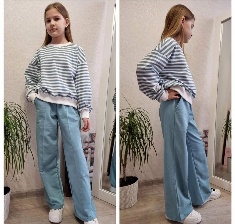 Новинка Весна🌿🌿🌿 Стильный костюм для модниц Свитшот+ штаны палаццо Ткань турецкая двунитка Качество супер! РЕКОМЕНДУЮ Замеры Кофта длина/ширина/рукав от горловины/брюки длина/шак/резинка 📌134-46/46/56/82/62/28 📌140-47/50/59/88/65/28 📌146-48/50/60/92/67/28 📌152-51/55/66/96/71/30 Модн
