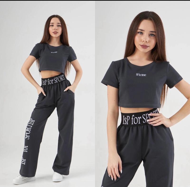 Новинка сезону! Суперовый комплект в современном стиле топ и палка с накатом в поясе широкая резинка есть карманы ткань турецкая двухнить пенье не кашлатиться цвет графит СУПЕР КАЧЕСТВО! рост/длин.топа/пог/длин.штанов/крок/пот/поб похибка+-2см 140/22/35/85/61/27/47 146/24/36/90/64/28/48 158/29/39/99/71/30/51 164/32/40/104/75/31/53 Ток