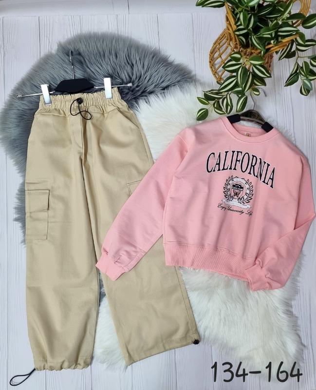 ландиш 💞НОВИНОЧКА свитшот + штаны карго свитшот из турецкой двухнитки пенье карго-коттон(джинс) в брюках есть врезные боковые карманы низ штанины на утяжке Рекомендую! 📍140(1 шт)-длина 46,пог 44,рукав 62/48,длина карго 85, крок 64,пояс 26, поб 45 📍146(1 шт)-длина 49, пог 45,рукав 64/49,длина карго 90,шак 66,пояс 27, поб 47 📍158(1 шт)-длина 54,пог 48,рукав 69/52,длина карго98, крок 76,пояс 29, поб 51