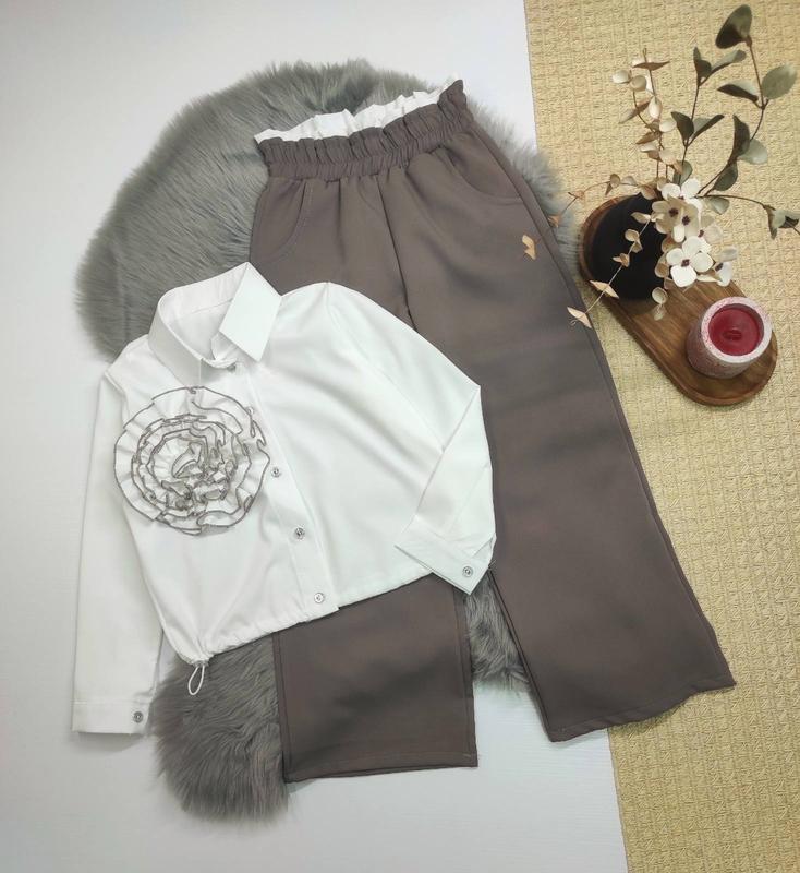 НОВИНКА Невероятно красивый костюмчик Тканина блуза софт,штани костюмка Цветок пришитый, внизу блуза стягиваются, застегивается на пуговицы В брюках есть кармашки КАЧЕСТВО ЧУДОВАЯ РЕКОМЕНДУЯ 🌾замеры:блуза длин/рукав от плеча/пог/брюки длин/шаг/пояс 128р-43/45/38/82/57/26 134р-46/47/41/84/59/27 140р-49/50/44/89/62/27,5 146р-52/53/46/92/64/28 152р-55/55/47/95/66/30 +-1см 🎋Цена 920 грн 🌷 Безопасной оплаты нет. Есть накладной платеж Новой Поштой с предоплатой. 🍀Оплата на карту, магазин сам формирует ттн. 🚗Отправка 1-3-х деньков. 🌹Смотрите все мое прочие товары, есть много интересного👍. Подписывайтесь и узнайте первыми о новиночках😍