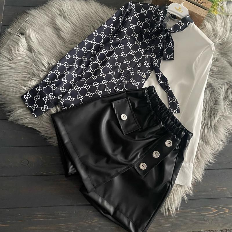 ТКАНИНА: ✔️ СПедНИКА-ШОРТЫ: эко-кожа в поясе резинка и потайная молния ✔️БЛУЗА: шелк армани ВЫМЕРЫ: р.128 долж шорт/бедра/талия 33/40/25см длина блузы/рукав от плеча/пог 53/47/38см-в наличии р.134 довж шорт/бедра/талия 35/42/26см длина блузы/рукав от плеча/пог 55/49/39см -в наличии р.140 длин шорт/бедра/талия 36/44/27см длина блузы/рукав от плеча/пог 57/52/41см-в наличии р.146 долж шорт/бедра/талия 37/45/28см длина блузы/рукав от плеча/пог 59/53/43см-в наличии р.152 долж шорт/бедра/талия 38/48/28см длина блузы/рукав от плеча/пог 60/55/44см -в наличии р.158 долж шорт/бедра/талия 40/51/29см длина блузы/рукав от плеча/пог 62/58/46см-в наличии р.164 довж шорт/бедра/талия 40/55/31см длина блузы/рукав от плеча/пог 64/60/49см -в наличии ВЛАСНЕ ВИРОБНИЦТВО!