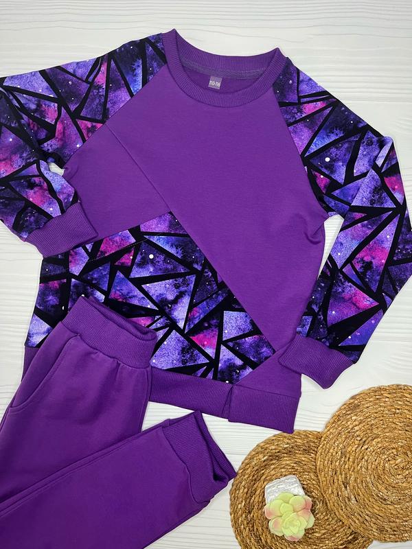 Костюм (свитшот и штаны) детский для девочки (двунитка) с ярким принтом листер