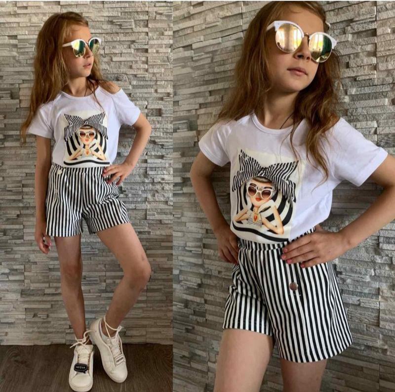 Стильный красивый костюм набор на девочку для изысканной модницы, Турция Качество очень красивое! Состоит из нарядной футболочки с открытыми плечиками с 3D рисунком и шорты в полоску с высокой талией В наличии размеры: ✅ 4 года на рост 104 см ❌ 5 лет на рост 110 см продан ✅ 6 лет на рост 116 см ✅ 7 лет на рост 122 см ❌8 лет на рост 128 см продан ✅ 12 лет на рост 152 см ✅ 14 лет на рост 164 см Состав : 100% хлопок
