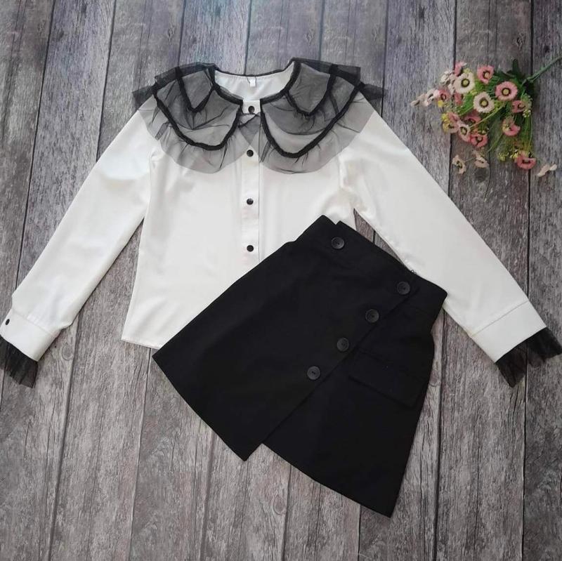 Нарядный комплект для девочек Блуза + юбка Блуза застегивается на кнопки, манжеты на кнопках. Пояс юбки по спинке на резинке. Ткань блуза - софт, украшенная фатином, юбка - костюмная. Замеры: длина юбки замерена сзади. 140 юбка длина - 37см, пояс -26см блуза длина - 51см, полуобхват груди - 40см, рукав от плеча - 54см. 146 юбка длина - 40см, пояс - 28см блуза длина - 52см, полуобхват груди - 42см, рукав от плеча - 57см. 152 юбка длина - 43см, пояс - 30см блуза длина - 55см, полуобхват груди - 43см, рукав от плеча - 61см. 158 юбка длина - 45см, пояс - 32см блуза длина - 57см, полуобхват груди - 45см, рукав от плеча - 62см. Мс